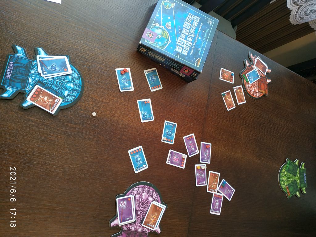 Pierwszy kontakt nastąpił w pierwszych latach mojej planszówkowej przygody gdy odwiedzaliśmy Pokój Gier w bytomskim BeCeKu. 8 lat później Kosmiczna Eskadra trafiła przypadkiem na Regał. Otrzymałem ją z jednego z MatHandlów. Przypadkowo, ponieważ służyła jako zabezpieczenie innego pudełka z grą przed wgnieceniem.
