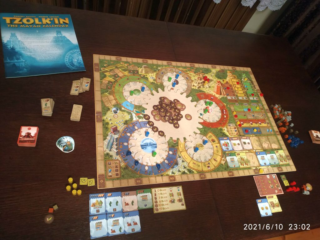 O zakupie Tzolkina zadecydowały nowatorska mechanika kół akcji, piękne wydanie i złożoność zasad. Udało się go zdobyć jeszcze w 2014 roku przed premierą polskojęzycznej edycji. Była to jedna z tych gier, w których często sromotnie przegrywałem nie potrafiąc znaleźć optymalnej ścieżki do dużego zapunktowania, a mimo to nie chciałem odpuszczać i grałem ponownie. Po kilku latach i "otrzaskaniu się" z innymi cięższymi tytułami w końcu coś kliknęło. Zacząłem zauważać korelację między mechanizmami, zacząłem stosować różne otwarcia w zależności od startowej sytuacji na planszy i nieustannie dalekosiężnie planować na minimum kilka tur do przodu. Po serii intensywnych partii w mysłowickim MOKu z wymagającym przeciwnikiem (dzięki Paweł) Tzolkin trafił do mojego ścisłego topu.