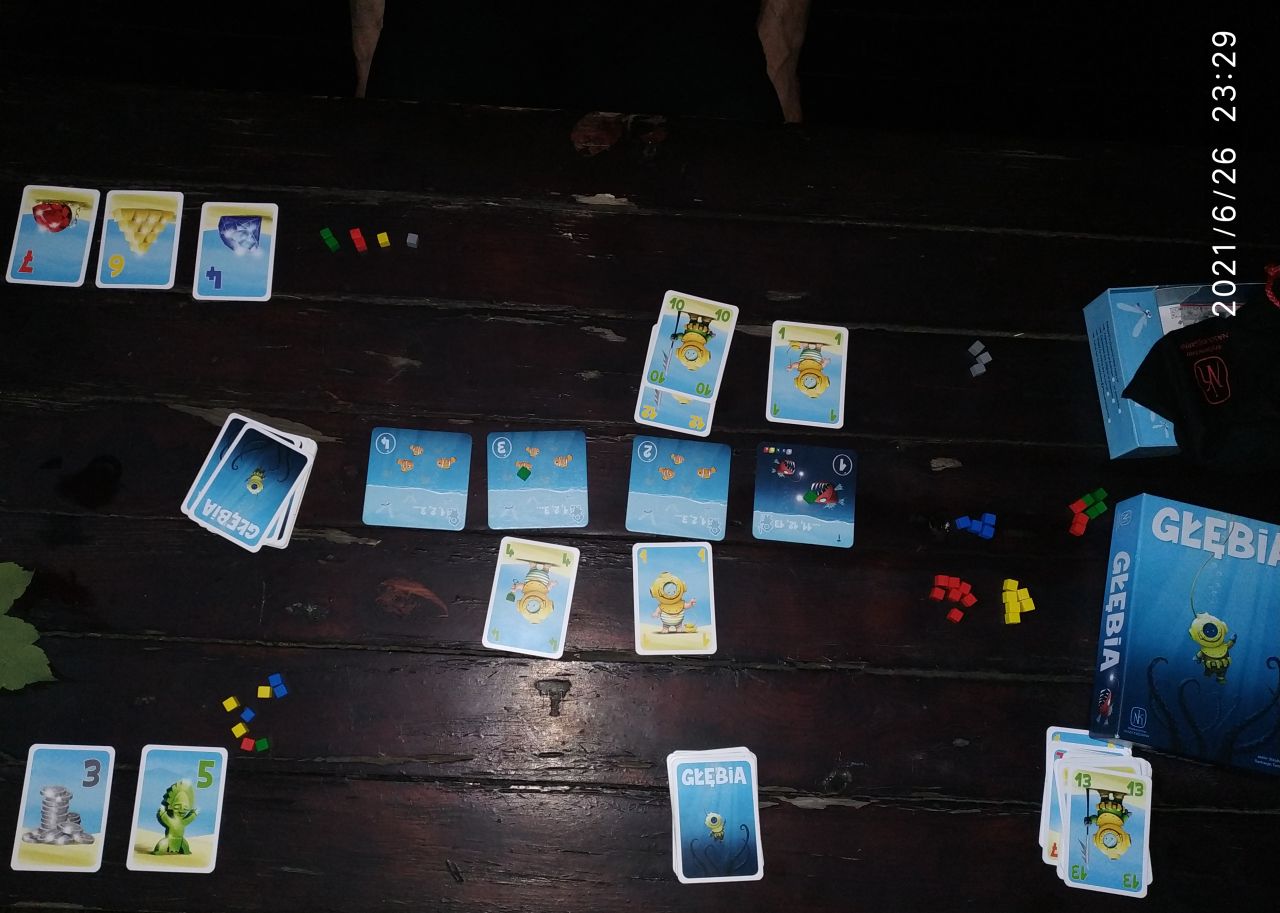 Głębia jest drugą po bardzo dobrze przyjętych na Regale Gejszach, 2-osobową małą grą od Naszej Księgarni, która uzupełniła naszą kolekcję. Polska wersja w odróżnieniu od oryginalnego "Balloon Cup" została wydana ze zmienioną tematyką (nurkowanie w poszukiwaniu skarbów) i grafikami.