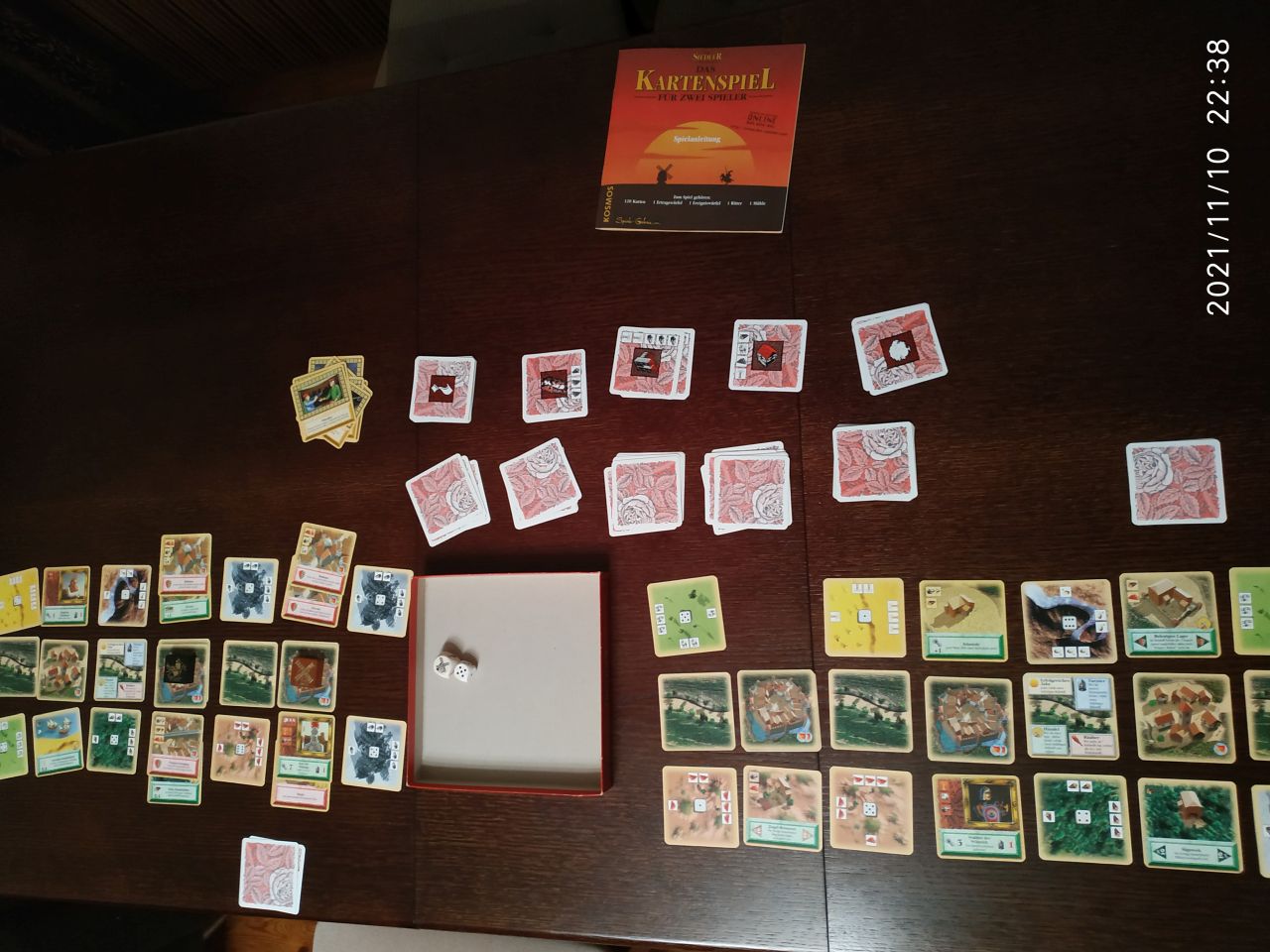 Karciana wersja Osadników z Catanu trafiła na Regał w 2016 r. upolowana przez Gosie w jednym ze sklepów w pudle używaną drobnicą. Jest to pierwsza edycja niemiecka z 1996 r.