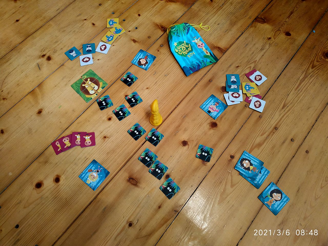 Tymczasem "Jungle Speed Kids" okazało się... Memory na sterydach. Gracze kolejno odkrywają zakryte kafelki z kilkoma rodzajami zwierzątek. Pierwszy gracz, który znajdzie parę takich samych zwierzątek i złapie totem zabiera tą parę kafelków do siebie. W przypadku pomyłki traci całą rundę. Wygrywa gracz, który po nadejściu lwa (składającego się z czterech kafelków znalezionych uprzednio przez graczy) posiada najwięcej upolowanych zestawów.
